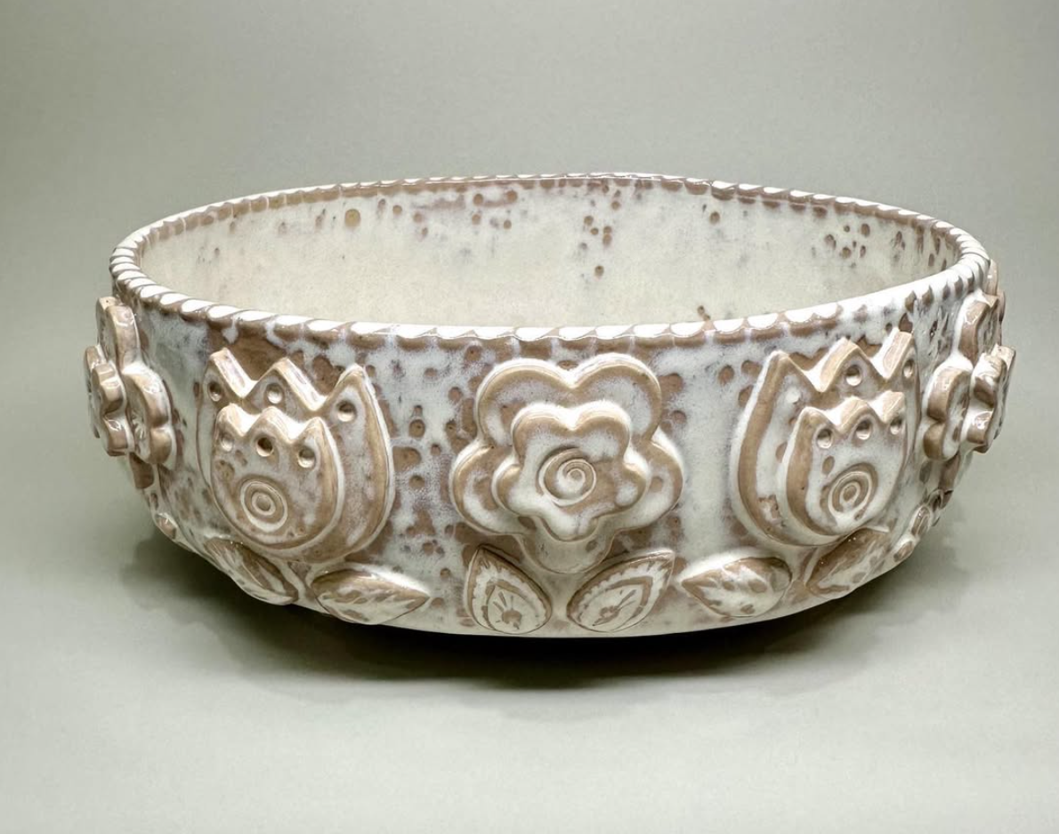 Clay has been part of my life since college, with a return to pottery after retiring to the Lowcountry. Inspired by nature, fabric, and texture, my work explores surface design through carving, sgraffito, printing, and colored clays, reflecting the colors and feel of coastal South Carolina.